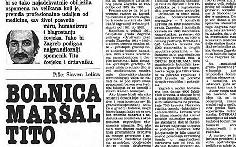 Letica u svojem tekstu obilno citira i hvalospjeve koje je o Titu napisao tadašnji šef hrvatskog zdravstva Boško Popović, a dio teksta u kojem, nakon analize planova za gradnju nove zagrebačke bolnice, iznosi vlastiti alternativni prijedlog, donosimo u nastavku. Ovako je 1981. pisao Slaven Letica: